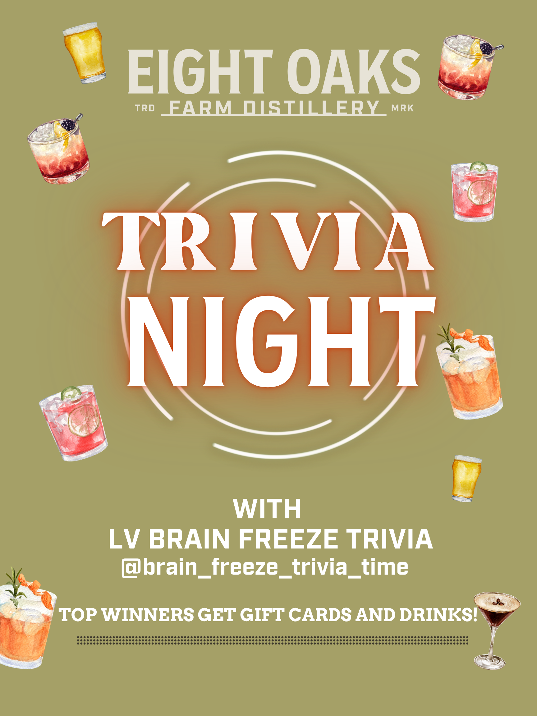 LV Brain Freeze Trivia is bringing trivia to the farm! Join us at 6:30ish pm for some brain-bending fun! Gift card prizes for the top winners.
